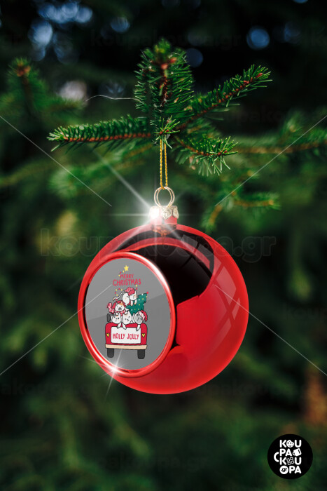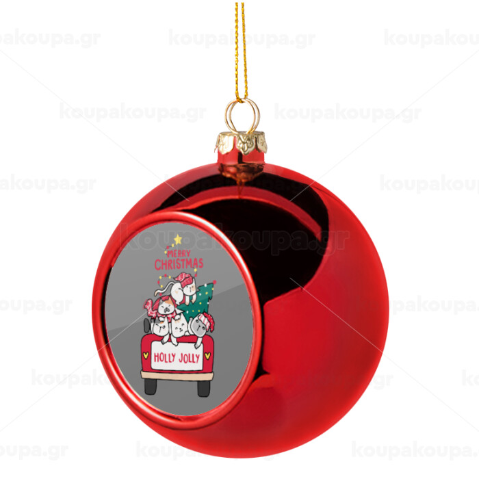 Merry Christmas cats in car, Χριστουγεννιάτικη μπάλα δένδρου Κόκκινη 8cm