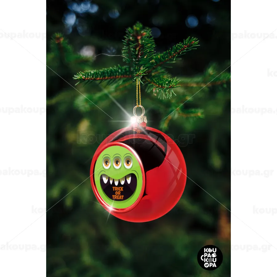 Halloween trick or treat 3 eyes monster, Χριστουγεννιάτικη μπάλα δένδρου Κόκκινη 8cm