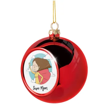 Super mom, Χριστουγεννιάτικη μπάλα δένδρου Κόκκινη 8cm