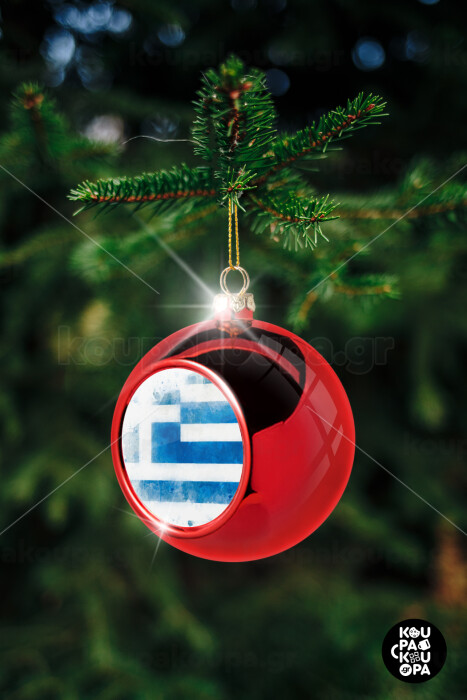 Ελληνική σημαία watercolor, Χριστουγεννιάτικη μπάλα δένδρου Κόκκινη 8cm