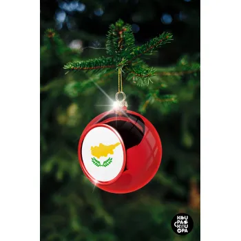 Cyprus flag, Χριστουγεννιάτικη μπάλα δένδρου Κόκκινη 8cm
