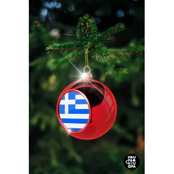 Greece flag, Χριστουγεννιάτικη μπάλα δένδρου Κόκκινη 8cm