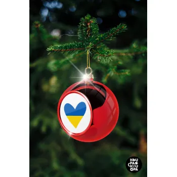 UKRAINE heart, Χριστουγεννιάτικη μπάλα δένδρου Κόκκινη 8cm