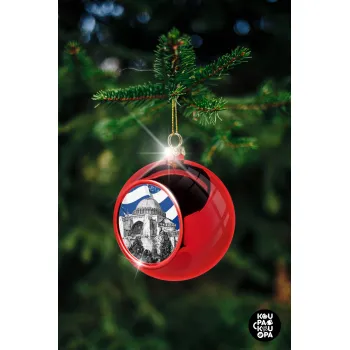 Αγία Σοφιά Ελληνική σημαία, Χριστουγεννιάτικη μπάλα δένδρου Κόκκινη 8cm