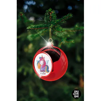 Μονόκερος, Χριστουγεννιάτικη μπάλα δένδρου Κόκκινη 8cm