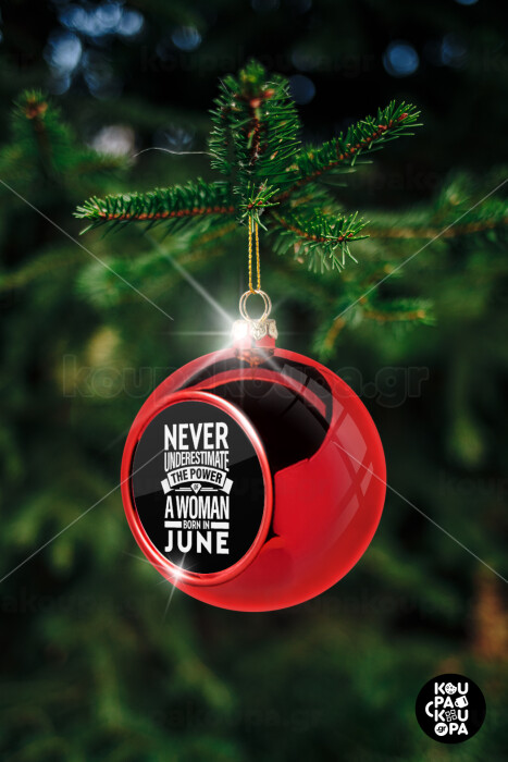 Never Underestimate the poer of a Woman born in..., Χριστουγεννιάτικη μπάλα δένδρου Κόκκινη 8cm