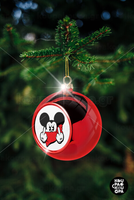 Mickey fuck off, Χριστουγεννιάτικη μπάλα δένδρου Κόκκινη 8cm