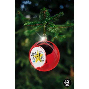Teacher super star!!!, Χριστουγεννιάτικη μπάλα δένδρου Κόκκινη 8cm