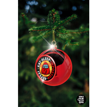 Among US Eat Sleep Repeat Impostor, Χριστουγεννιάτικη μπάλα δένδρου Κόκκινη 8cm