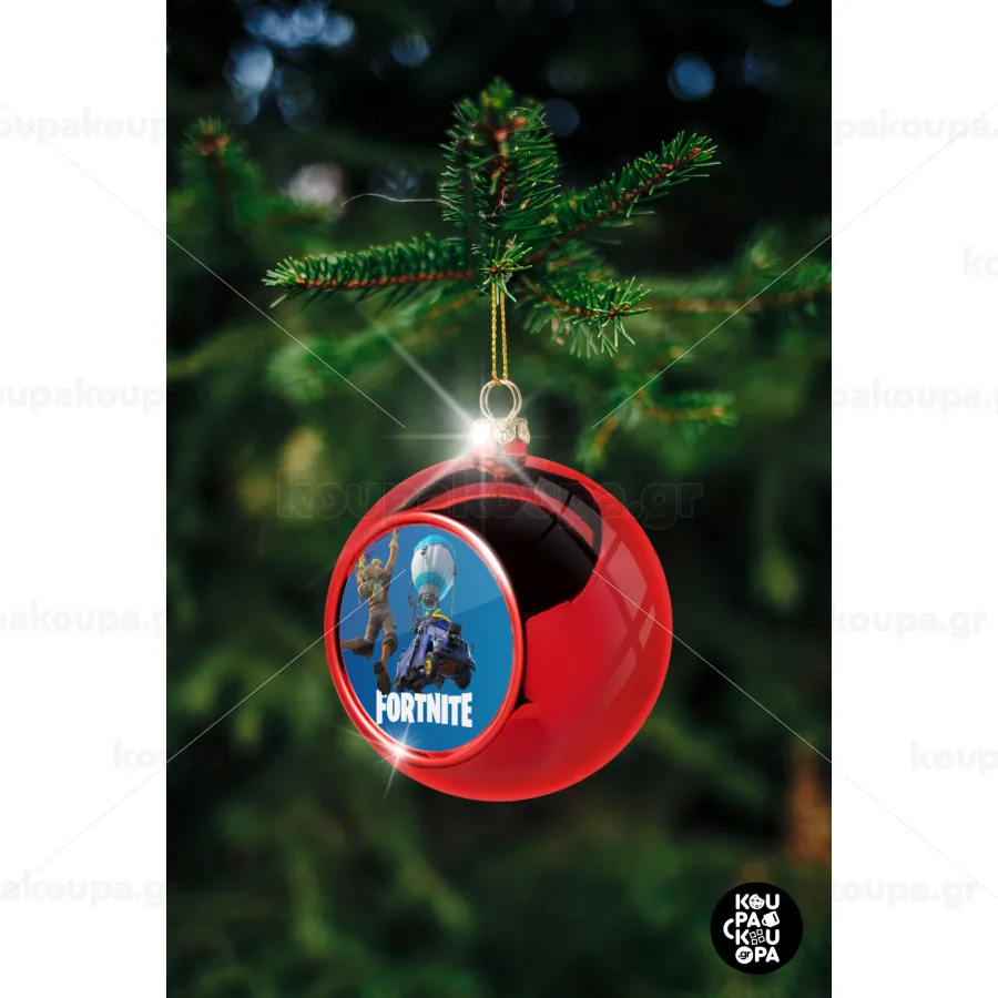 Fortnite Bus, Χριστουγεννιάτικη μπάλα δένδρου Κόκκινη 8cm