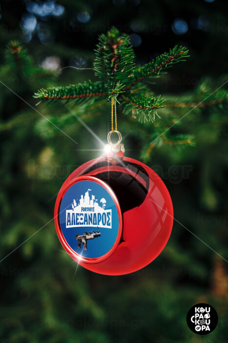 Fortnite with gun με το όνομα σου, Χριστουγεννιάτικη μπάλα δένδρου Κόκκινη 8cm