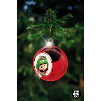 Super mario Luigi, Χριστουγεννιάτικη μπάλα δένδρου Κόκκινη 8cm
