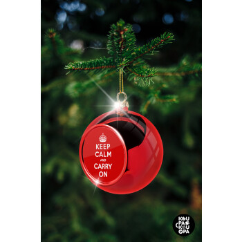 KEEP CALM  and carry on, Χριστουγεννιάτικη μπάλα δένδρου Κόκκινη 8cm