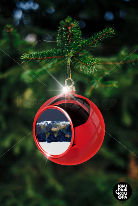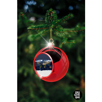 Earth map, Χριστουγεννιάτικη μπάλα δένδρου Κόκκινη 8cm