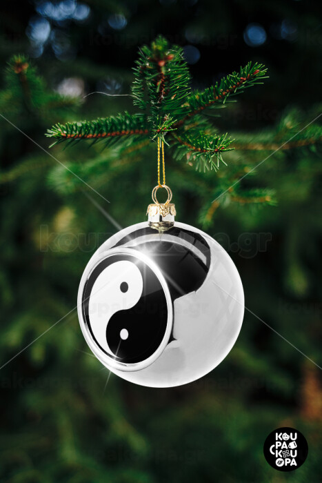 Yin Yang, Στολίδι Χριστουγεννιάτικη μπάλα δένδρου Ασημένια 8cm