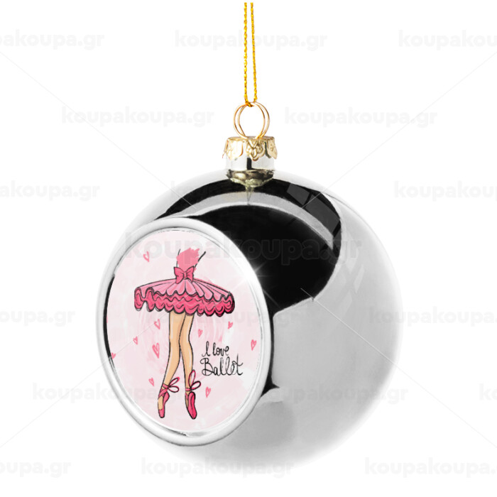 I Love Ballet, Στολίδι Χριστουγεννιάτικη μπάλα δένδρου Ασημένια 8cm
