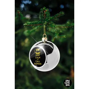 KEEP CALM & Call BATMAN, Στολίδι Χριστουγεννιάτικη μπάλα δένδρου Ασημένια 8cm