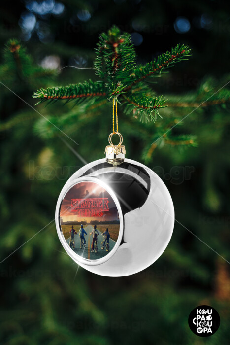 Stranger Things city, Στολίδι Χριστουγεννιάτικη μπάλα δένδρου Ασημένια 8cm
