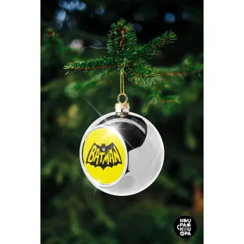 Batman classic logo, Στολίδι Χριστουγεννιάτικη μπάλα δένδρου Ασημένια 8cm