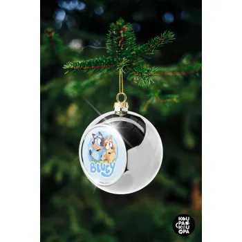 Μπλε, Στολίδι Χριστουγεννιάτικη μπάλα δένδρου Ασημένια 8cm