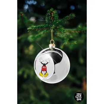 Mickey hide..., Στολίδι Χριστουγεννιάτικη μπάλα δένδρου Ασημένια 8cm