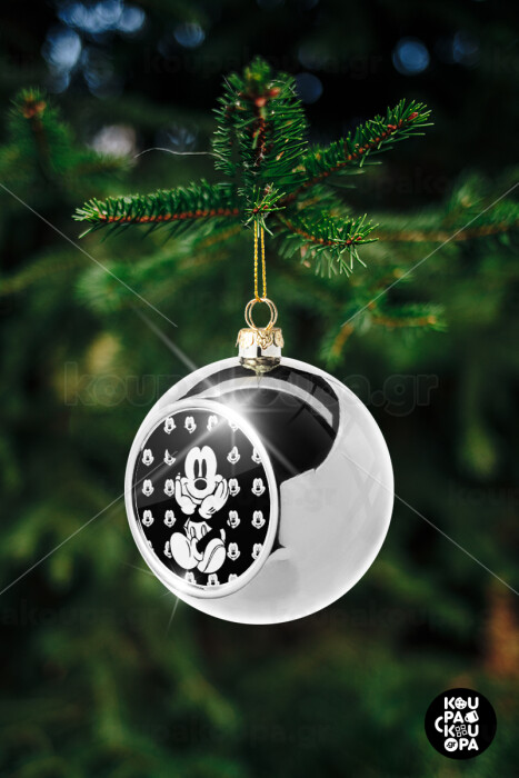Mickey, Στολίδι Χριστουγεννιάτικη μπάλα δένδρου Ασημένια 8cm