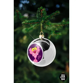 Pink Panther cartoon, Στολίδι Χριστουγεννιάτικη μπάλα δένδρου Ασημένια 8cm