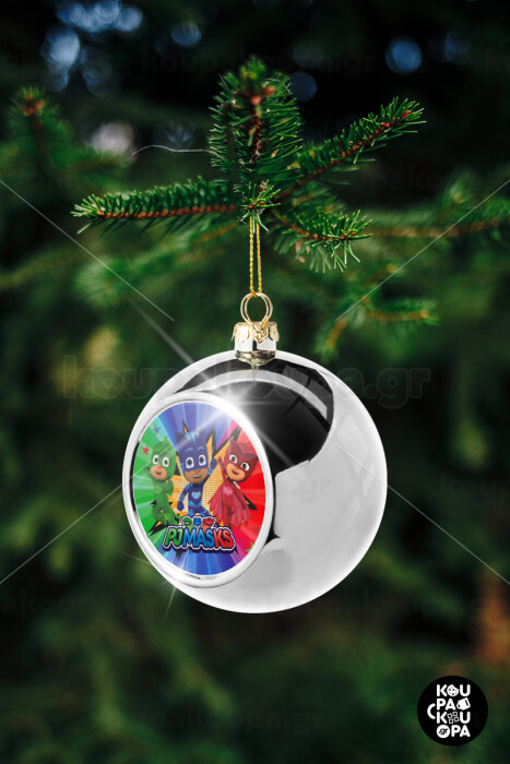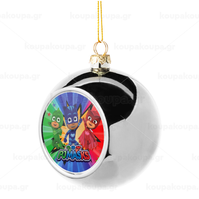 PJ masks, Στολίδι Χριστουγεννιάτικη μπάλα δένδρου Ασημένια 8cm