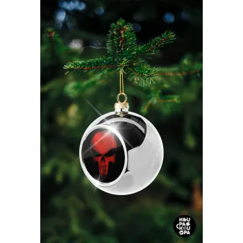 Red skull, Στολίδι Χριστουγεννιάτικη μπάλα δένδρου Ασημένια 8cm