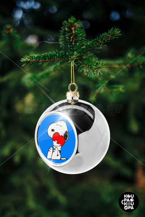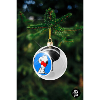Snoopy, Στολίδι Χριστουγεννιάτικη μπάλα δένδρου Ασημένια 8cm