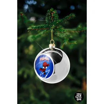 Spiderman kid, Στολίδι Χριστουγεννιάτικη μπάλα δένδρου Ασημένια 8cm