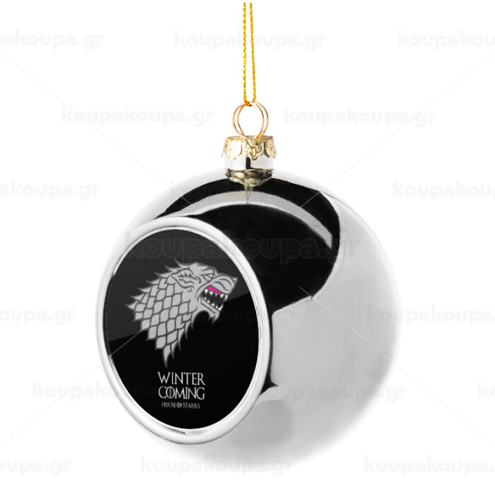 GOT House of Starks, winter coming, Στολίδι Χριστουγεννιάτικη μπάλα δένδρου Ασημένια 8cm