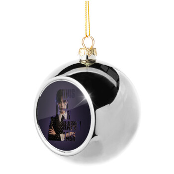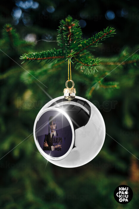 Wednesday, This is my happy face, Στολίδι Χριστουγεννιάτικη μπάλα δένδρου Ασημένια 8cm