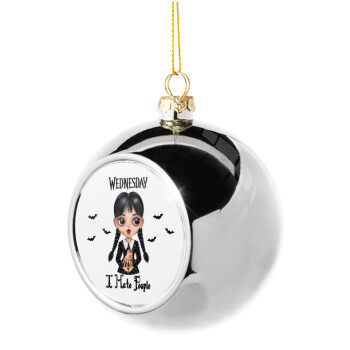 Wednesday Adams, i hate people, Στολίδι Χριστουγεννιάτικη μπάλα δένδρου Ασημένια 8cm