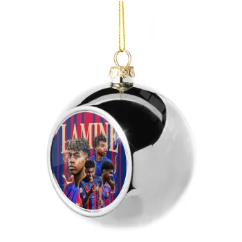 lamine yamal FCB, Στολίδι Χριστουγεννιάτικη μπάλα δένδρου Ασημένια 8cm
