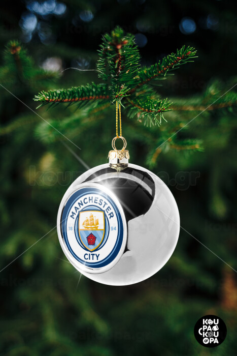Manchester City FC , Στολίδι Χριστουγεννιάτικη μπάλα δένδρου Ασημένια 8cm