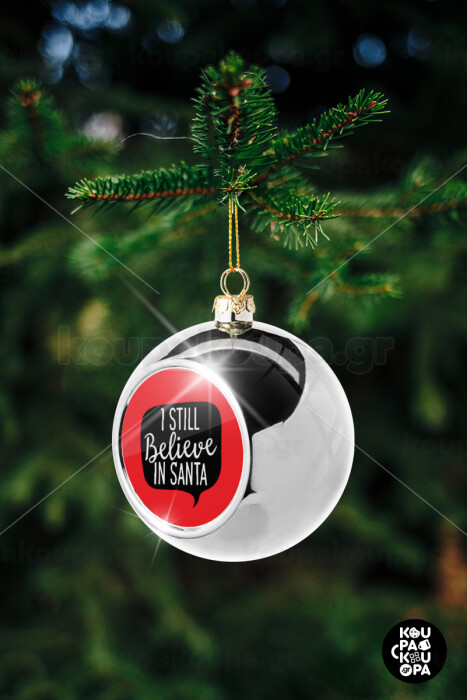 Ι still believe in santa, Στολίδι Χριστουγεννιάτικη μπάλα δένδρου Ασημένια 8cm