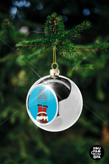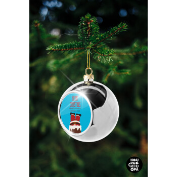 Merry christmas chimney, Στολίδι Χριστουγεννιάτικη μπάλα δένδρου Ασημένια 8cm
