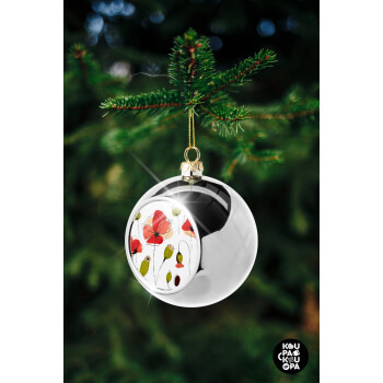 Red poppy flowers papaver, Στολίδι Χριστουγεννιάτικη μπάλα δένδρου Ασημένια 8cm