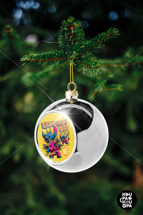 Stitch Experiment 626, Στολίδι Χριστουγεννιάτικη μπάλα δένδρου Ασημένια 8cm