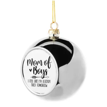 Mom of boys i feel like im already tired tomorrow, Στολίδι Χριστουγεννιάτικη μπάλα δένδρου Ασημένια 8cm