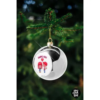Couple, I love you, Στολίδι Χριστουγεννιάτικη μπάλα δένδρου Ασημένια 8cm