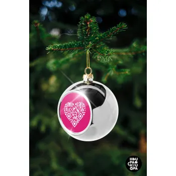 Heart hidden MSG, try me!!!, Στολίδι Χριστουγεννιάτικη μπάλα δένδρου Ασημένια 8cm