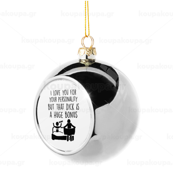 I Love You for Your Personality But that D... Is a Huge Bonus , Στολίδι Χριστουγεννιάτικη μπάλα δένδρου Ασημένια 8cm