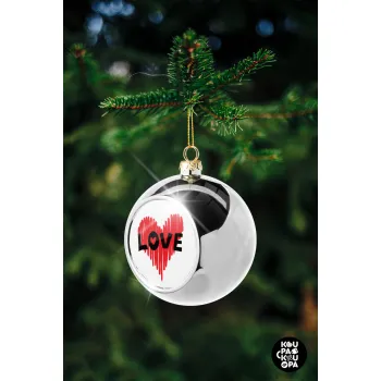 I Love You red heart, Στολίδι Χριστουγεννιάτικη μπάλα δένδρου Ασημένια 8cm
