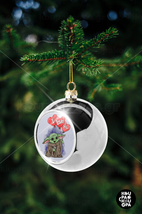 Yoda, i love you, Στολίδι Χριστουγεννιάτικη μπάλα δένδρου Ασημένια 8cm