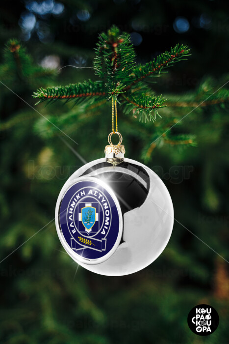 Ελληνική Αστυνομία, Στολίδι Χριστουγεννιάτικη μπάλα δένδρου Ασημένια 8cm