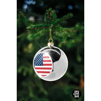 USA flag, Στολίδι Χριστουγεννιάτικη μπάλα δένδρου Ασημένια 8cm