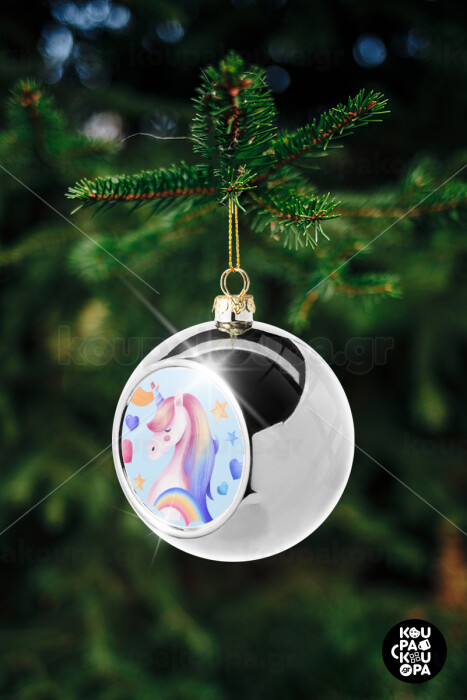 Μονόκερος, Στολίδι Χριστουγεννιάτικη μπάλα δένδρου Ασημένια 8cm