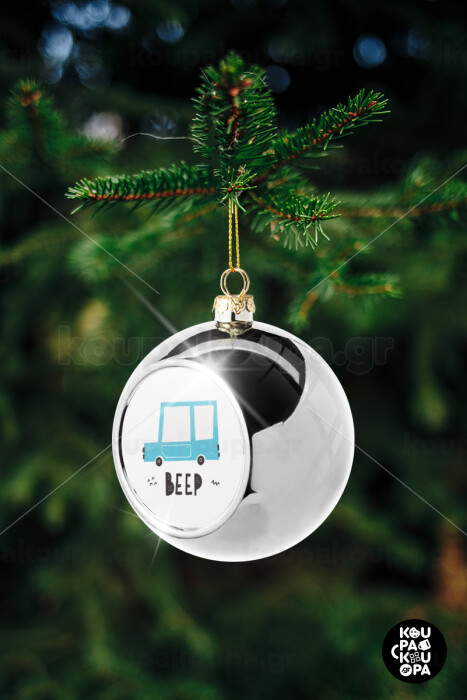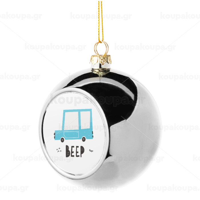 Car BEEP..., Στολίδι Χριστουγεννιάτικη μπάλα δένδρου Ασημένια 8cm